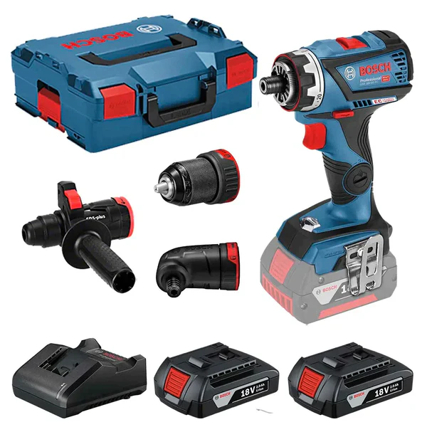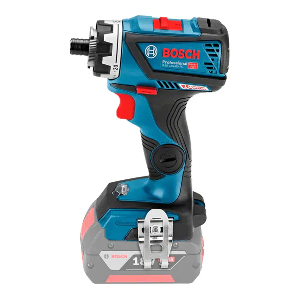 The Bosch GSR 18V-60 FC Flexiclick 18V Cordless Drill/Driver comes with 3 additional chucks and can be used in 4 different functions: angle chuck, SDS chuck, 13mm metal chuck, and 1/4″ quick-release chuck. You pay for 1 and get 4! Furthermore, the tool is compatible with all Bosch 18V batteries and chargers.