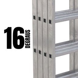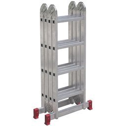 Composta por 4 seções articuladas, esta escada pode ser usada como escada de encostoescada de pintor (formato A)andaime, além de até 10 configurações diferentes, adaptando-se a diversas alturas e ambientes. As articulações com travamento automático garantem segurança total durante a operação, impedindo que a escada se mova ou dobre acidentalmente.