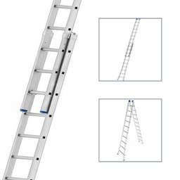 Escada com estrutura em alumínio proporcionando qualidade e durabilidade, com rodas que facilitam o uso e sistema de articulação com encaixe de travamento que proporciona maior segurança e abertura cônica dos pés e sapatas antiderrapantes, garantindo estabilidade. Possui três modos de utilização que podem se adequar a sua necessidade extensível, aberta e simples, suportando até 150 Kg e alcançando até 5,05 metros.
